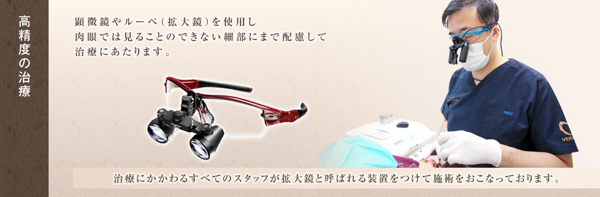 森下ベリタス歯科では、顕微鏡やルーペ(拡大鏡)を使用し肉眼では見ることのできない細部にまで配慮して治療にあたります。
