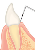 測定には、目盛りのついたプロープ(針状の金属製の器材)を歯と歯肉の隙間にそっと差し込み、