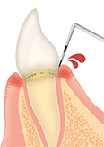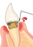 歯と歯ぐき(歯肉)の間「歯周ポケット」から侵入した細菌が、歯肉に炎症を引き起こし、さらには歯を支える骨を溶かして破壊してしまう病気です。