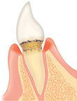 歯肉の炎症が進み、歯周ポケットが深くなったところに歯石が付き、骨が溶けはじめます。重度になると歯がぐらぐらになります。